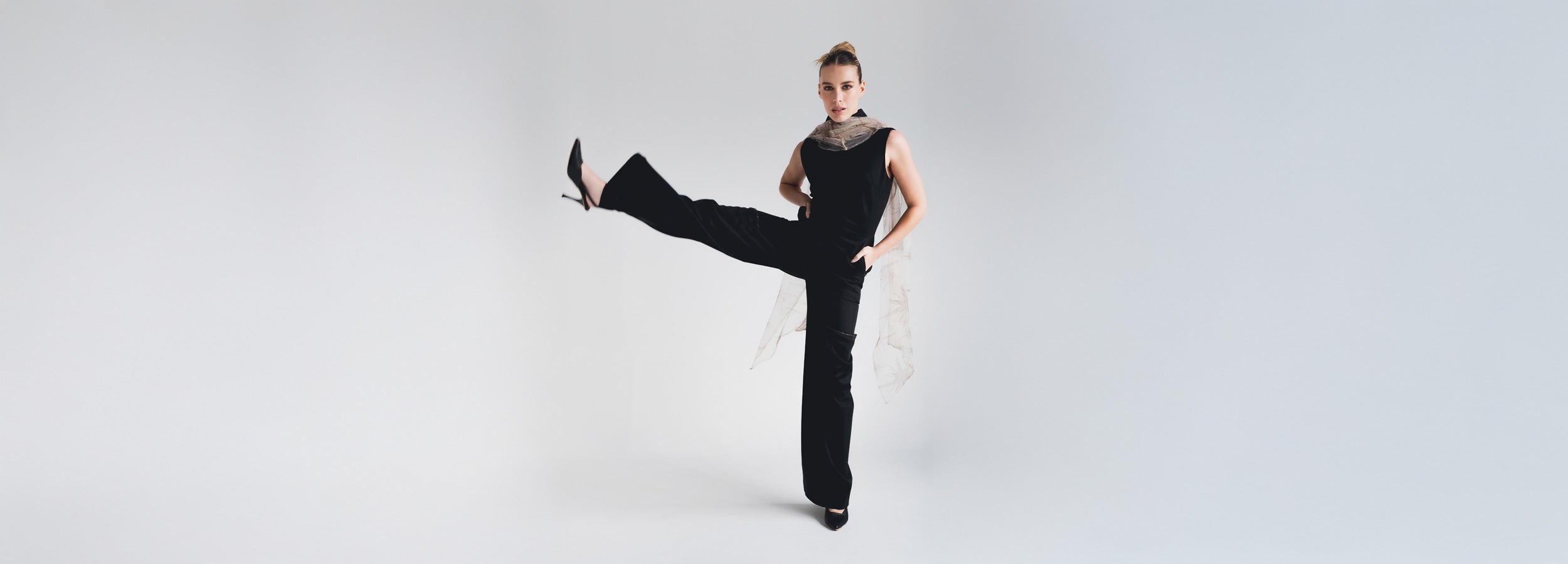 El look NOCTURNA es una oda al negro, un color que todo lo abarca y que envuelve con un aura de misterio y elegancia. Los detalles ocultos, llenos de magia, se revelan a través de sutiles transparencias que añaden un toque etéreo, creando un juego fascinante entre lo visible y lo oculto. La estructura impecable y los cortes geométricos aportan un dinamismo cautivador, mientras que los elementos artesanales realzan la sofisticación del conjunto.